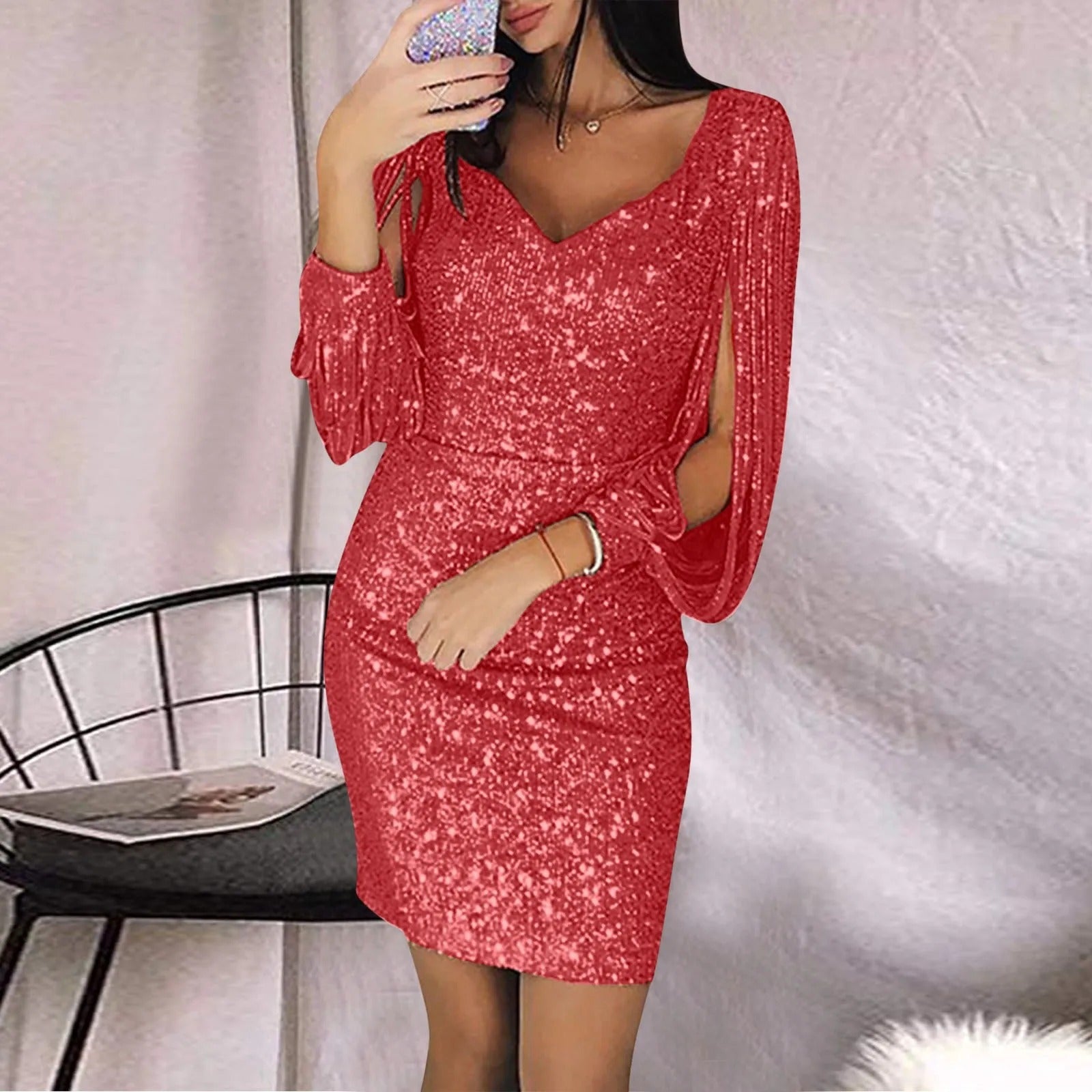 Deslumbra | Elegante vestido con lentejuelas y borlas para mujer