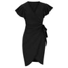 Deslumbra | Vestido con escote en V, cintura ajustada, pliegues y mangas acampanadas para mujer