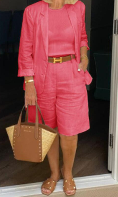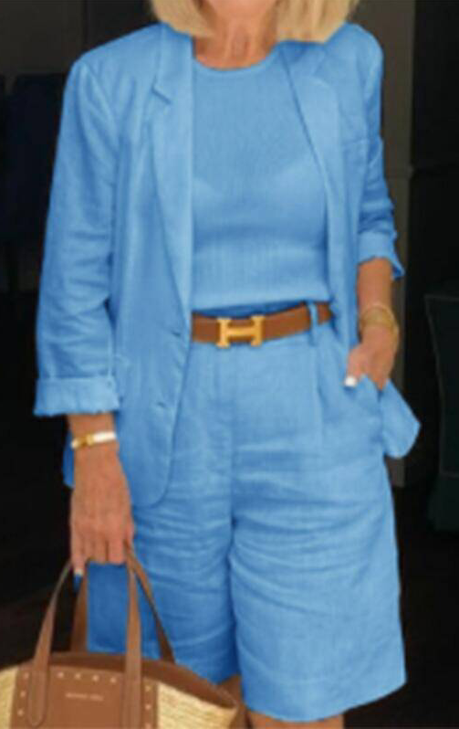 Deslumbra | Elegante conjunto de shorts y blazer de lino para mujer