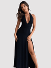 Deslumbra | Vestido largo halter con abertura alta para mujer