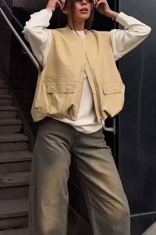 Deslumbra | Chaleco informal holgado sin mangas con bolsillos