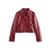 Material: Cuero sintético Nombre del tejido: Poliéster Color: Rojo, Marrón Categoría de producto: Chaqueta de cuero Tipo de manga: Mangas princesa Tallas: S, M, L Largo: Corto (40 cm) Contenido del ingrediente principal: Menos del 30% Tipo de estilo: Privado Destacado Tipo de cuello: Cuello invertido Largo de manga: Manga larga Estilo: Estilo negro Temporada: Otoño, Invierno
