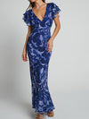 Deslumbra | Vestido largo con escote en V y mangas con volantes