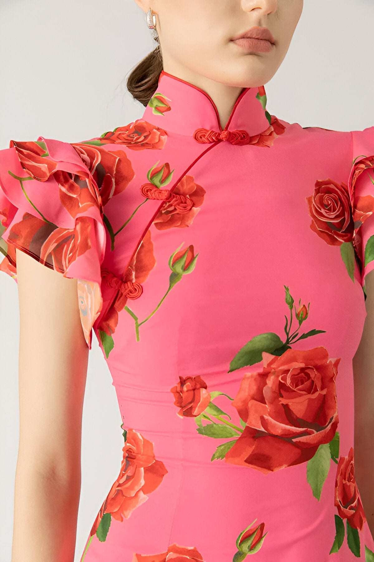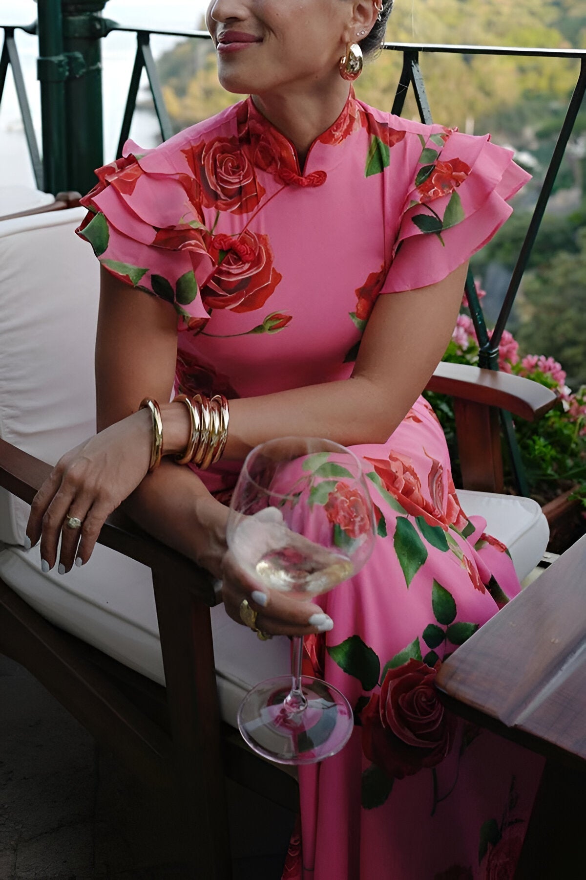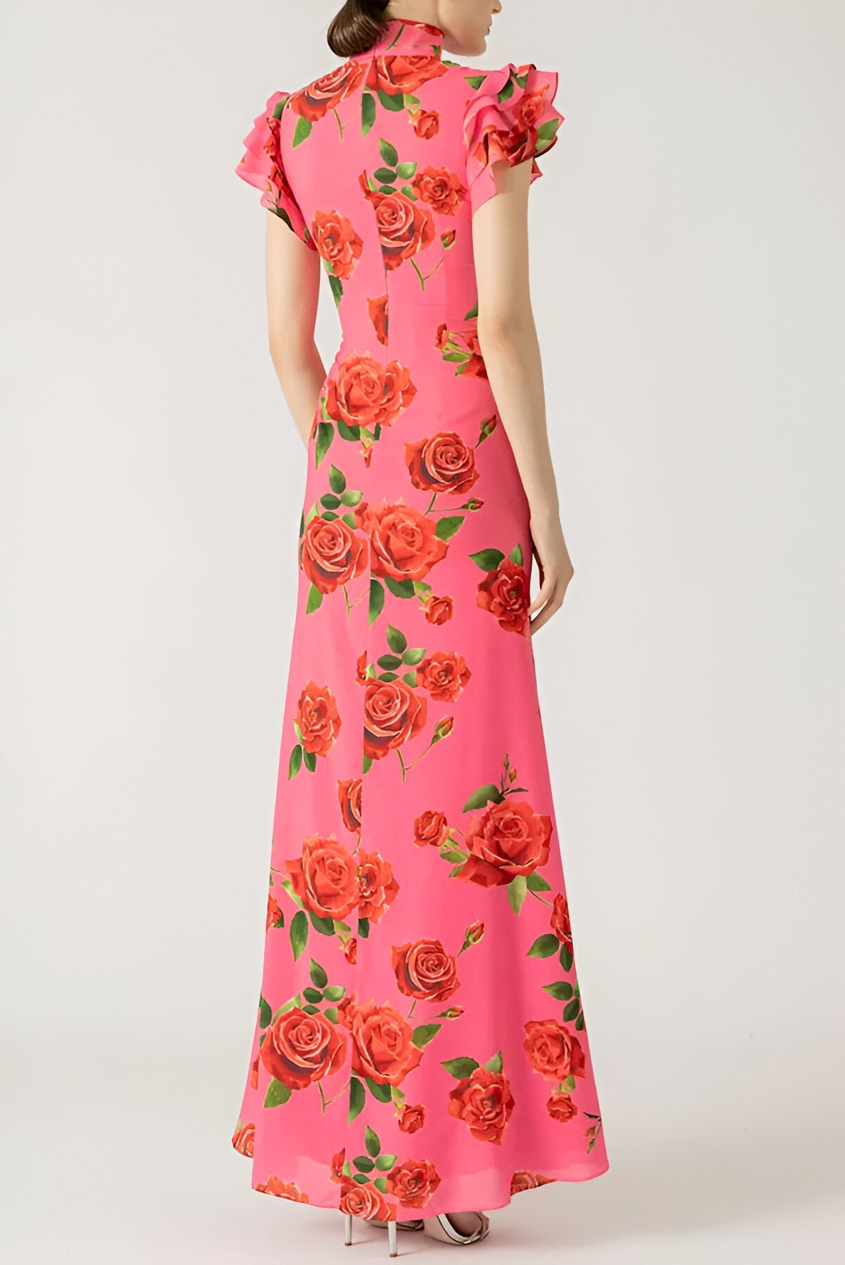Embrace effortless style with the LUZ™ Dress, showcasing a striking floral design that captivates the eye. The elegant high neckline and tiered bell sleeves contribute to its sophistication, while the full-length shape offers a sleek and graceful profile.