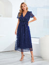 Out-Shine | Short Sleeve Cross V Neck Belt Midi Dress