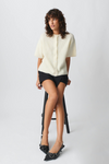 This monochrome women's sweater with short sleeve combines simplicity and style. Made of soft fabric, it is perfect for warmer weather or as a light layering part.